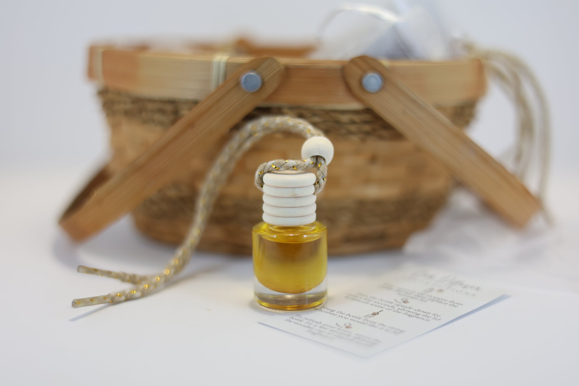 Gently tip the bottle upside down for a few seconds to allow the fragrance oil to soak into the wooden lid.